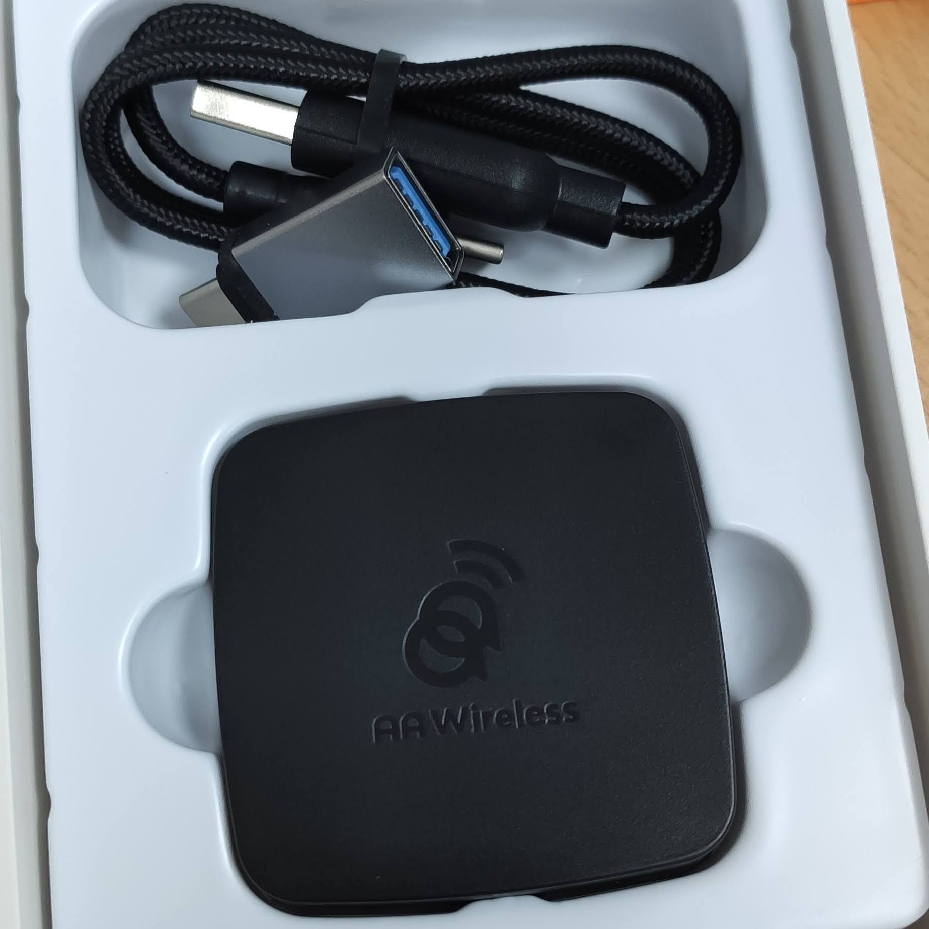 그러다가 방법을 찾은게 이 AA Wireless이다. AA는 아마 Android Auto의 약자일 거 같다. 그러니깐 안드로이드 오토를 선없이 무선으로 연결시켜준다는 기계를 말하나 싶다.